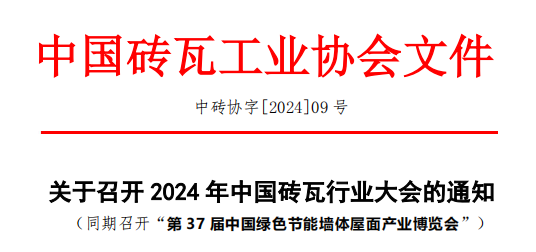 关于召开2024年中国砖瓦行业大会的通知 (同期召开“第37届中国绿色节能墙体屋面产业博览会”)