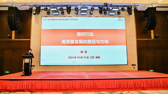 中国砖瓦工业协会副会长、功力机器有限公司董事长高玲作《墙体材料高质量发展路径及方向》报告;