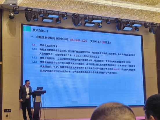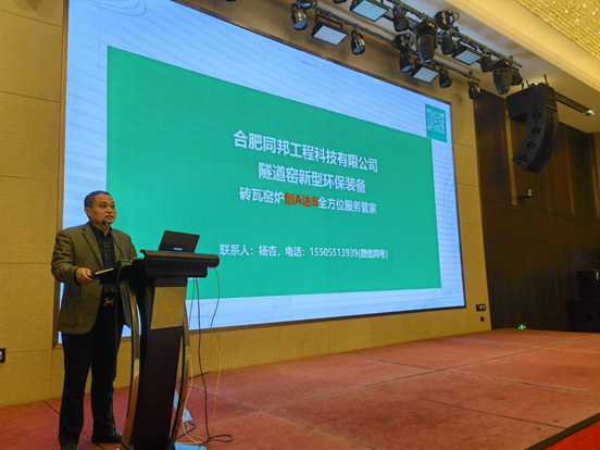 合肥同邦工程科技有限公司总经理杨杏作“窑炉新型脱硫除尘脱硝协同处理技术装备”报告;