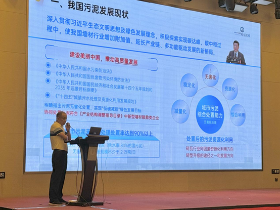 江苏桂铭机械有限公司董事长张宏林作“污泥无害化处理及在烧结砖中的应用”报告;